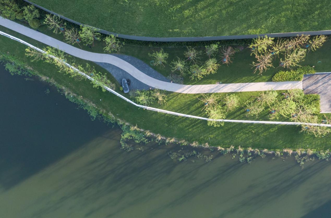 于府外,坐拥滨水半岛的生态湖景,围合生态谧境,繁华都会中自在一方天地。